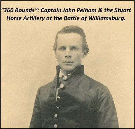 On March 23, 1862, the Stuart Horse Artillery was officially mustered into service with one battery and the dashing, 23-year-old John Pelham of Alabama its first Captain. The concept of horse artillery wasn’t new, but through the vision of Confederate General “JEB” Stuart and the leadership of Capt. John Pelham, the Stuart Horse Artillery redefined mobile firepower during the Civil War. The battery was first tested here at Williamsburg on May 5, 1862. Join the WBA as author and historian Sarah Kay Bierle presents “360 Rounds”: Captain John Pelham & the Stuart Horse Artillery at the Battle of Williamsburg. This program will explore John Pelham's life, tactics, and military legacy and focus on his artillery's effects at Williamsburg and other fights on the Virginia Peninsula during the spring and summer of 1862.